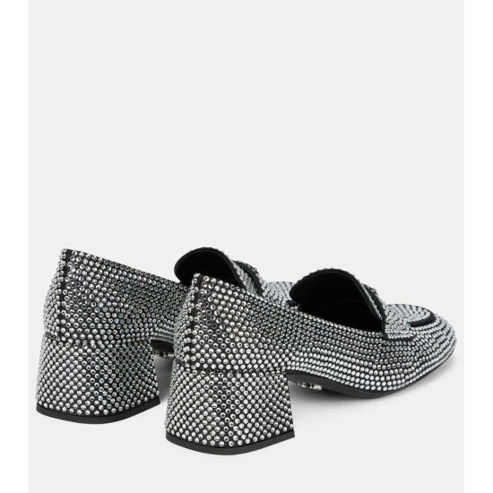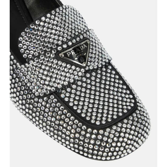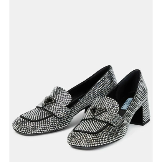 Studded with hotfixed crystals all over, these Prada loafers will command attention with every step. Set atop 50mm block heels, the square-toed design is made from satin and accented with a triangle logo at the front.