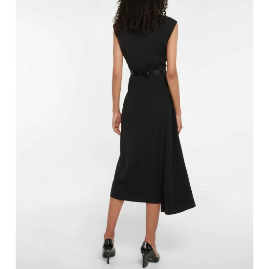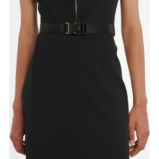 Prada merges a classic design with utilitarian influences with this piece. It’s shaped to a sheath silhouette that flares ever so slightly thanks to the asymmetric pleat detail at the hem, and closes with a half-zipper at the front. Style with biker boots for workwear or stiletto heels for a special soirée.