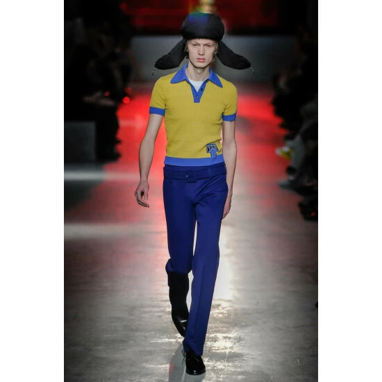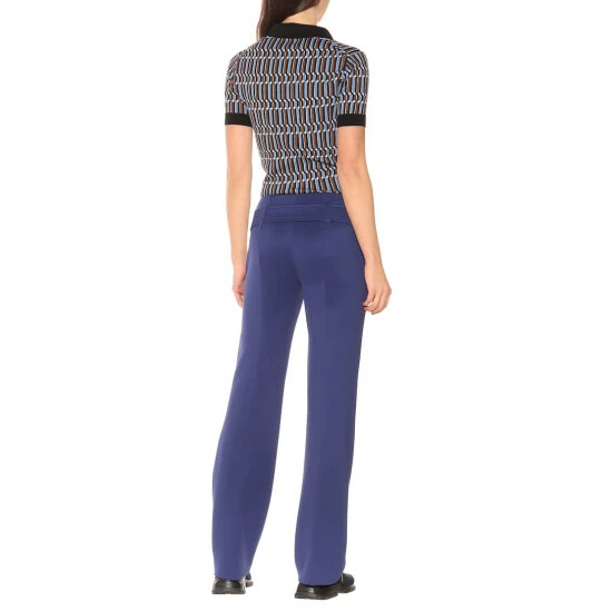 From Prada’s Cruise 2019 collection, these pants carry a distinct retro-cool flair. Crafted in Italy from navy blue technical jersey, they have a self-belt at the mid-rise waist and fall in a slim-straight leg. Borrow from the boys, as the runway styling suggests, and wear yours with a polo shirt.