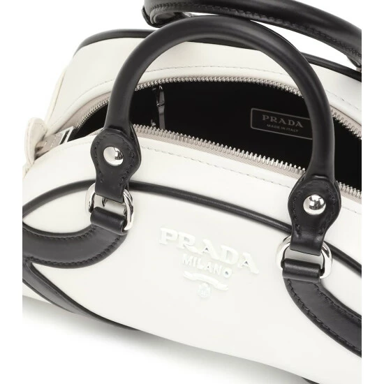 Indulge in Prada’s retro-chic sensibilities with the Bowling bag from the label’s Resort 2020 collection. This compact style is made in Italy from white leather with contrasting black trim and silver-tone hardware details.