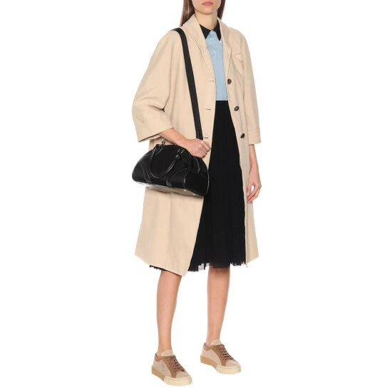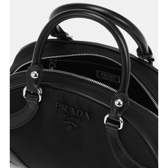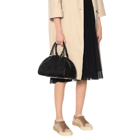 Featured throughout the Resort 2020 runway show, this black crossbody bag is a sized-down iteration of Prada’s signature Bowling silhouette. It’s crafted in Italy from the house’s iconic Pocone nylon with tonal leather overlays, and comes subtly accented with a metal logo plaque on the front.