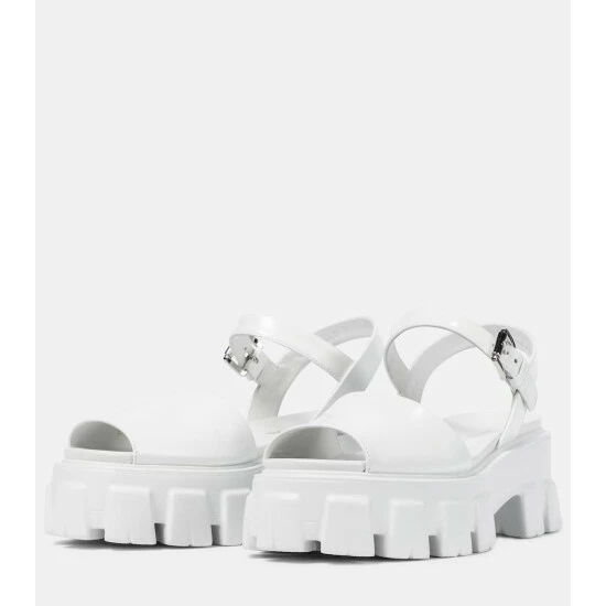 With the lugged, exaggerated rubber soles that have become a Prada hallmark in recent seasons, these sandals will have you storming into summer. This white pair is made from brushed leather for a glossy finish.