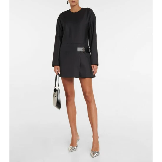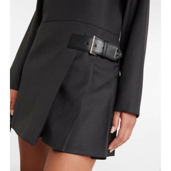 This minidress from Prada balances sporty with chic. Made from wool crêpe, it has a structured silhouette that features a chunky side buckle and a pleated skirt.