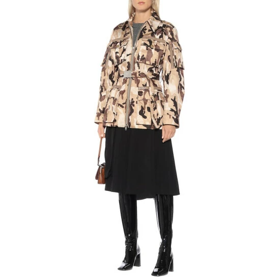 Prada takes military-chic to a luxe level with this camouflage jacket. The Italian-made piece has been crafted with a zip-front closure and belted waist detail, as well as numerous patch pockets across the arms, chest and waist. Layer yours with dark-rinse denim and combat boots for enviable autumnal style.