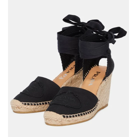 Summer isn’t quite the same without a ready supply of espadrille wedges โ which should include this black pair from Prada. They are made from durable and lightweight cotton canvas and set upon traditional braided jute soles. However, they’re finished with a notable twist: the Prada logo, surrounded by knotted stitching.