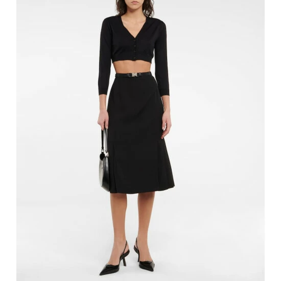 This cardigan from Prada will layer effortlessly over lightweight foundation knits. It’s made in Italy from silk-backed cashmere to an on-trend crop silhouette and has three-quarter-length sleeves.