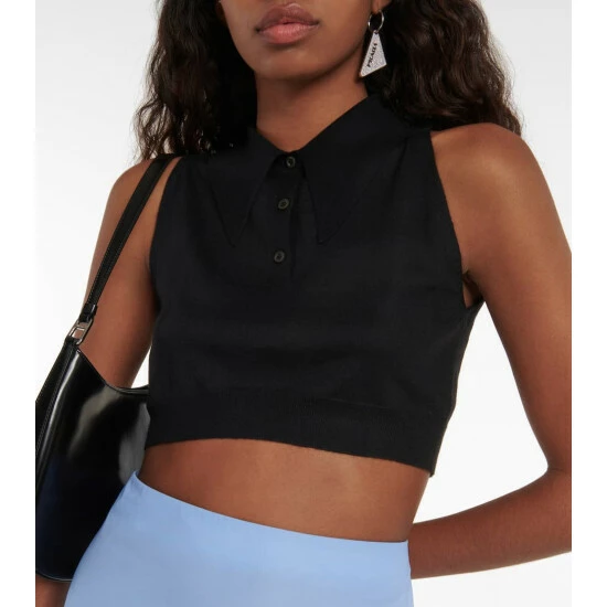 This Prada crop top puts a twist on the classic polo silhouette. It’s finely knitted from cashmere and silk and has a handy half-button placket.