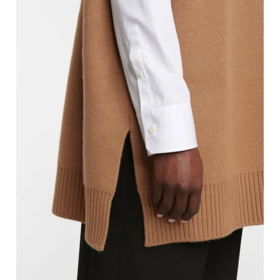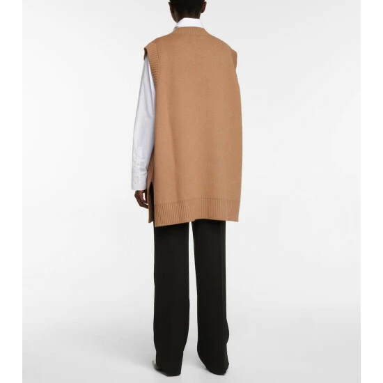 Whether worn as a voluminous outer layer or a chic minidress, this beige vest from Prada will evoke a feeling of chic minimalism. Made from cashmere, the sleeveless design features a classic crewneck and ribbed edges. Style yours with tonal knee-high boots and a blazer.
