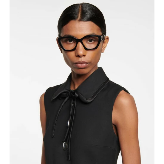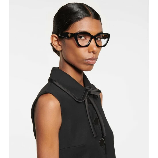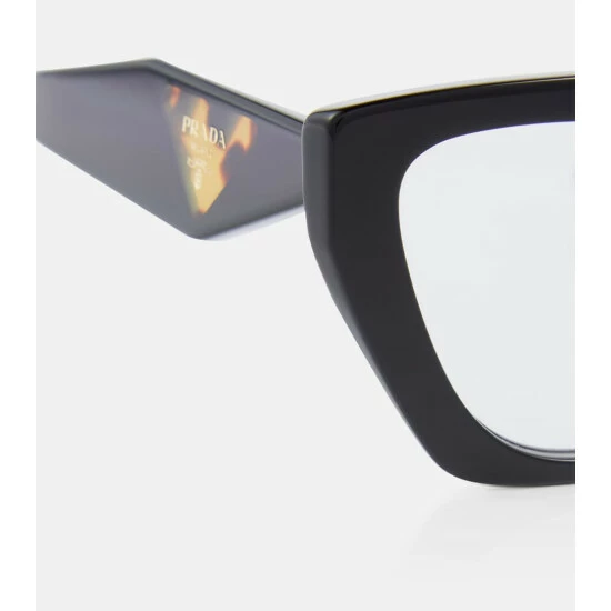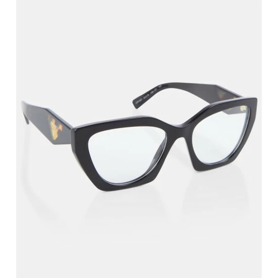 Prada’s timeless pieces add sophistication to every outfit. These cat-eye glasses feature a black, all-angles frame with tortoiseshell triangle logos at the temples.