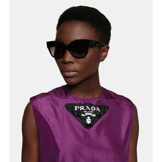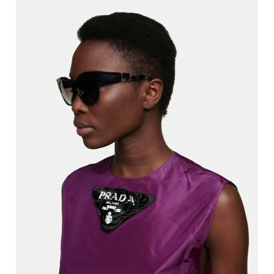 These black sunglasses from Prada will make for a timeless addition to your accessories rotation. Made in Italy from acetate, they have an oversized cat-eye silhouette with logo-embossed temples and tortoiseshell-effect tips.