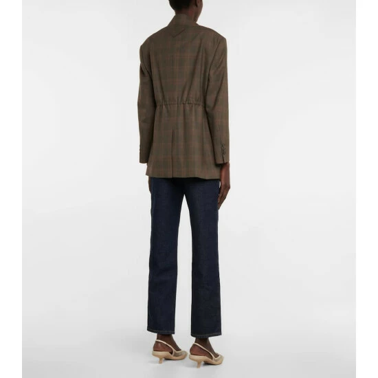 This checked blazer from Prada places a heritage pattern in a modern context. Made from wool with a fully lined inner, it cinches at the waist with a drawstring for a sporty finishing touch.