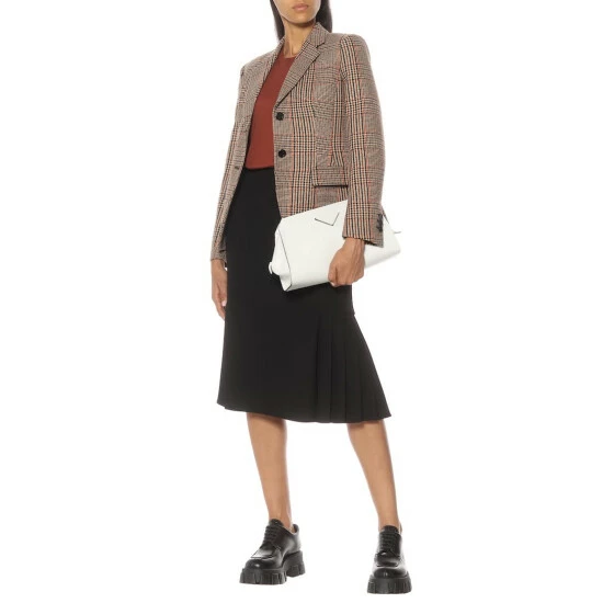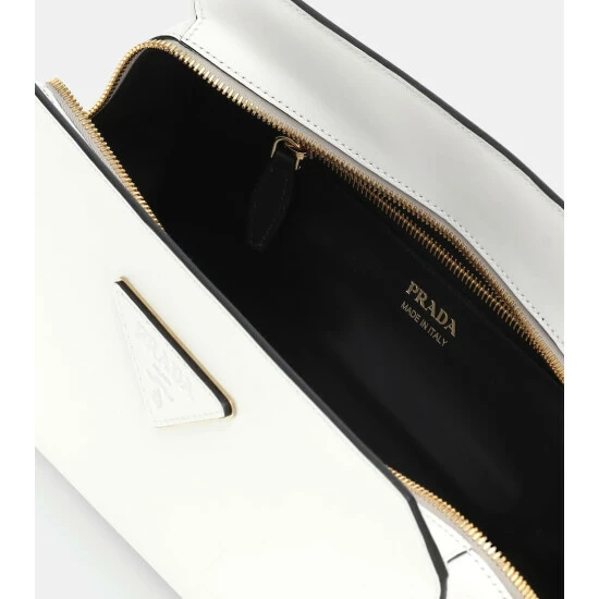 Finish evening ensembles on a refined note with this white City clutch bag from Prada. Made in Italy from smooth calf leather, it’s cut to a trapeze silhouette with the house’s triangular emblem logo tonally accenting the front. The wrap-around top opens to reveal a black interior fitted with a zipped pocket.