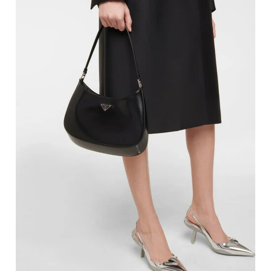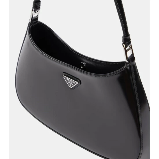 Meet the newest member of the Prada bag family: the Cleo Small baguette bag. A modern interpretation of a style from the archives, this black brushed-leather design is lined with signature nylon and finished with the iconic triangular emblem. Expect to see it on the arms of fashion’s finest this season.
