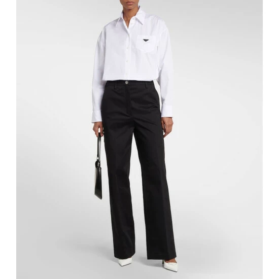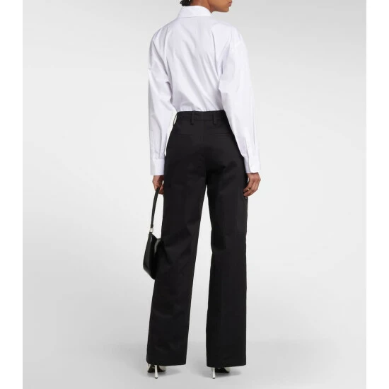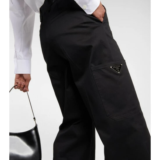 These cargo pants from Prada are made from cotton-blend gabardine. They have a relaxed fit with wide legs, pressed pleats, and two large patch pockets.