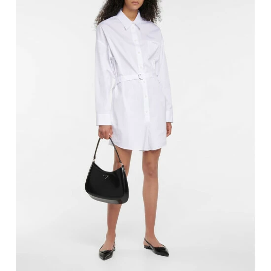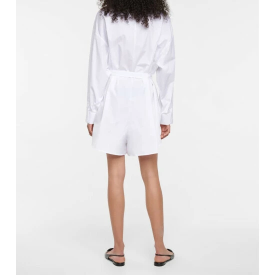 Made from crisp cotton poplin, this white Prada playsuit riffs on the house’s established affinity for traditionally masculine tailoring. The button-down design is cinched at the waist with a D-ring belt, and has shorts with contoured legs that mirror classic boxer briefs.
