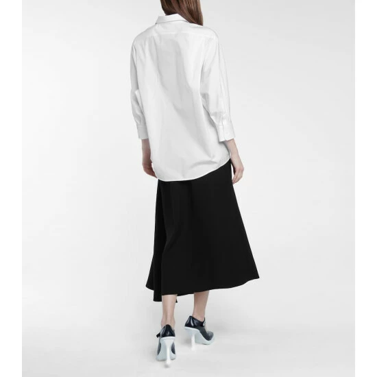 Champion a truly modern approach to minimalism with this cotton poplin shirt from Prada. In wear-with-anything white, the design has a classic collar and button placket, with its elongated fit offering a directional spin. Style over tailored pants for a contrast of forms.