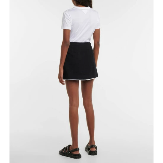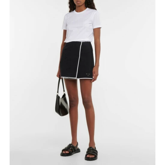 Fashion’s obsession with them miniskirt shows no sign of waning. This Prada iteration is made from cotton terry with contrasting trims and is adorned with the label’s triangular logo.