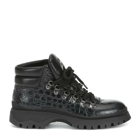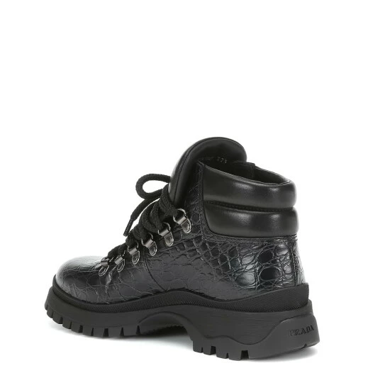 These ankle boots from Prada tap into two key trends for the season ahead: embossed textures, and hiking-inspired silhouettes. Made in Italy from black leather, the style works an inviting combination of high style and high comfort – note its padded necks and tongues, and its cleated rubber soles. Wear yours as a tough counterpoint to romantic dresses.