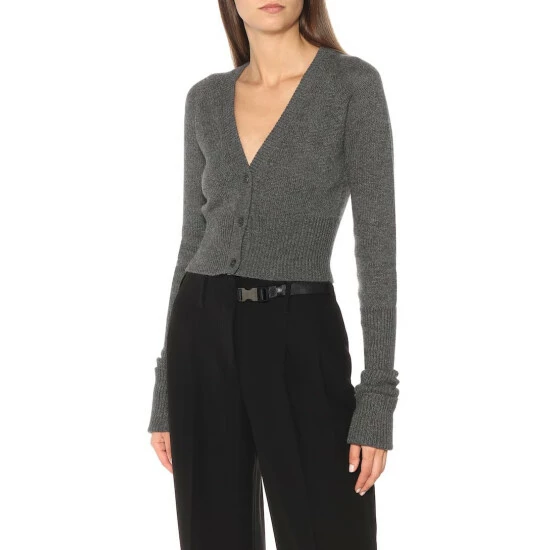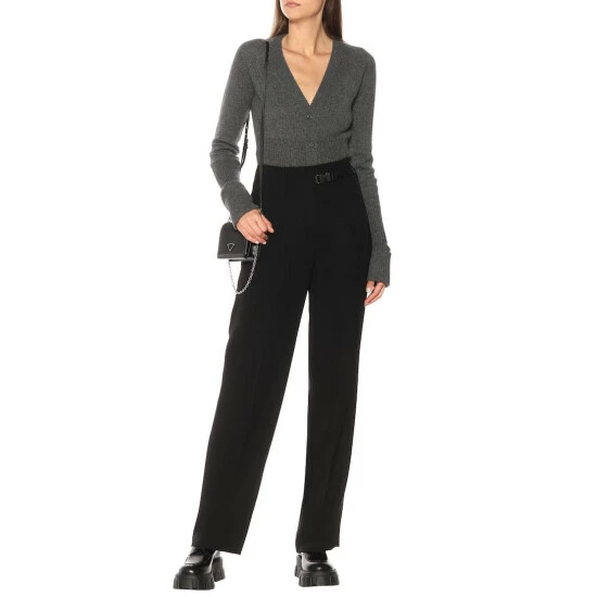 The humble button-up cardigan is given a sleek makeover by Prada. The fine cashmere knit lends itself perfectly to this piece’s slim-fit silhouette, which is completed with elongated sleeves as a subtly subversive touch. Pair yours with a fitted pencil skirt for a striking look.