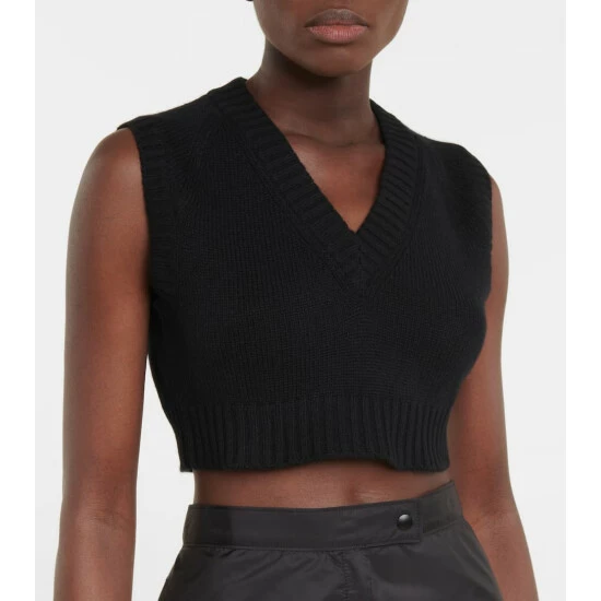 Shaped to a cropped silhouette, this sweater vest from Prada feels refreshing yet nostalgic. It’s knitted from pure cashmere with ribbed trims and a triangular patch on the back that label devotees will keenly spot.