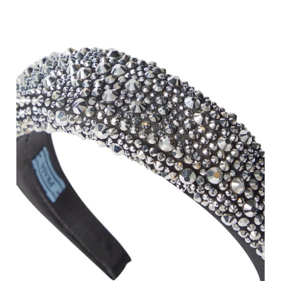 Prada makes festive accessorizing easy and effortless with this sparkling headband. It’s embellished with crystals and subtly branded with the house’s signature triangular logo emblem.