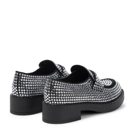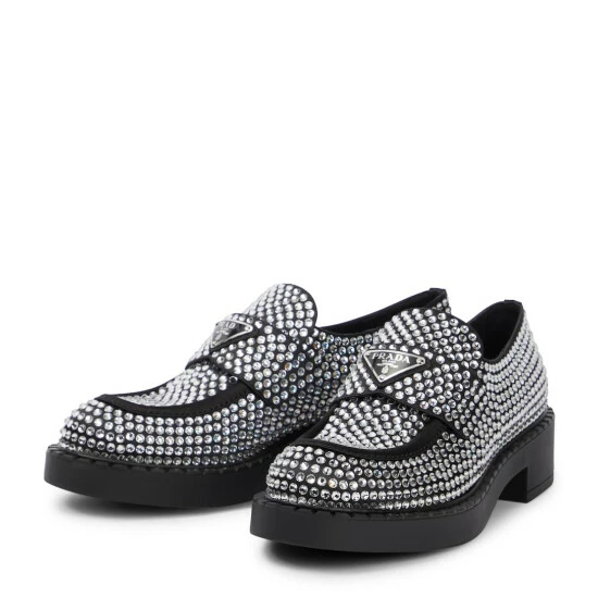 These loafers from Prada are covered with heat-sealed crystals so they’ll add a generous dose of sparkle to your weekday ensembles. Logo-adorned straps finish this slip-on pair on a refined note.