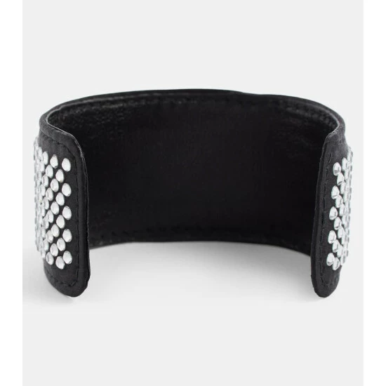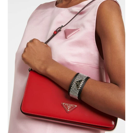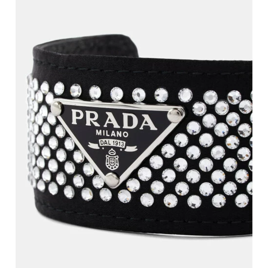 Add sparkle to your evening edit with this Prada bracelet. The style is made in Italy from a rigid strap of fabric and leather, covered in luminous crystals, and finished with the house’s triangle logo.
