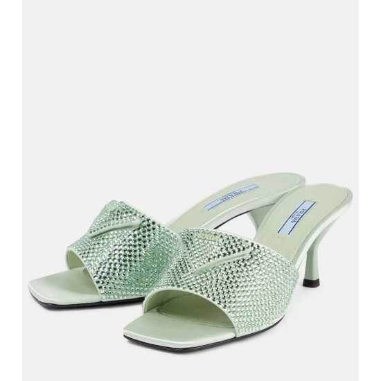These mules from Prada will add a dose of dazzle to your footwear collection. Made from lustrous satin, they’re embellished with tonal crystals and emblazoned with brand-signature triangle plaques.