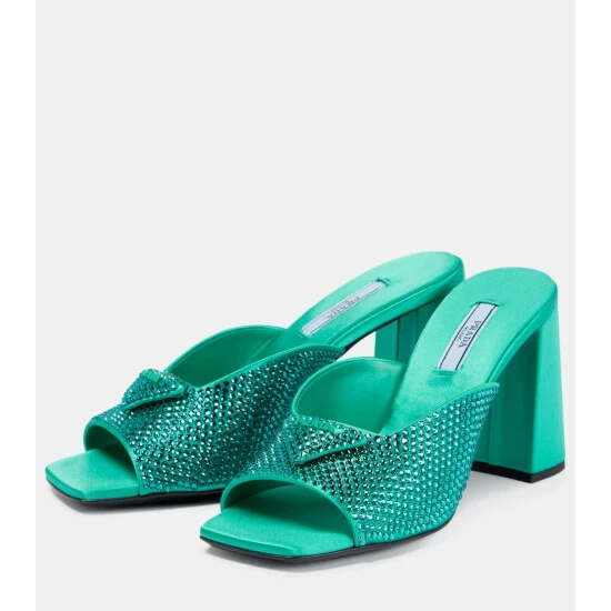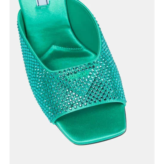 These mules from Prada will add a dose of dazzle to your footwear collection. Made from lustrous satin, they’re embellished with tonal crystals and emblazoned with brand-signature triangle plaques.