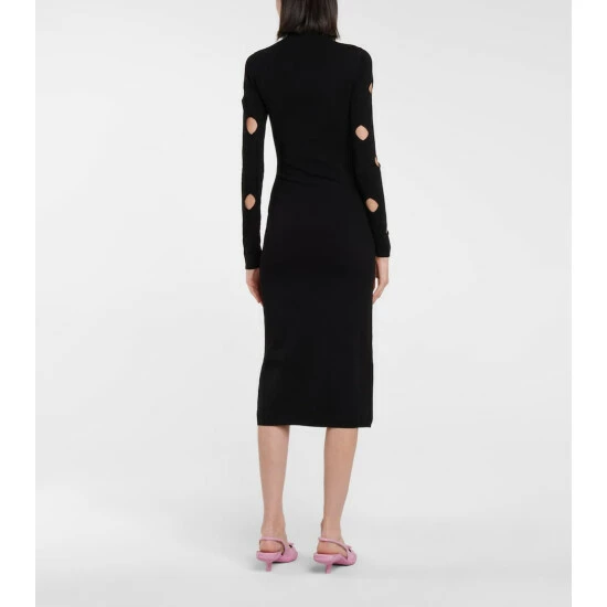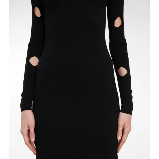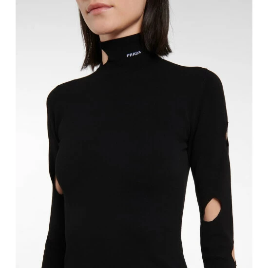 Prada’s latest collection revolves around the deconstruction of garments, exhibited by this cutout midi dress. Made from a mid-weight compact knit, it’s sealed with iconic logo detailing. Best of all, it arrives in timeless black, so you can wear it season after season.