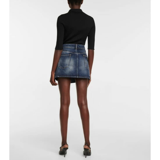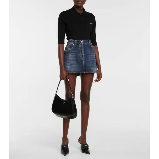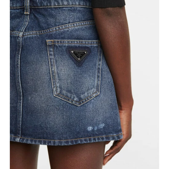 Structure everyday looks around the effortless appeal of this blue denim miniskirt from Prada. Sitting high at the waist, the style has a buttoned front and a slim silhouette. Style yours with a printed T-shirt tucked at the waist and statement sneakers.
