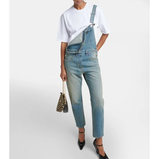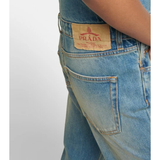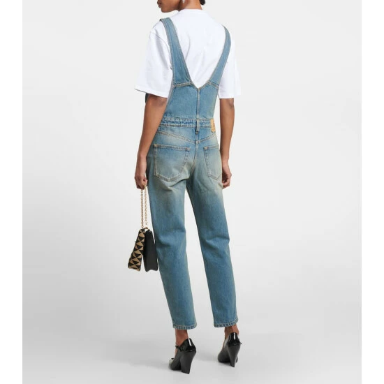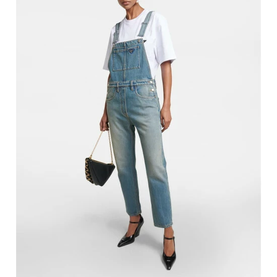 These utilitarian overalls from Prada are made from pure cotton denim in a faded vintage wash. Detailed with a triangular logo plague, this design has straight legs.
