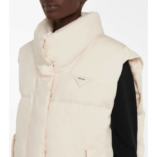 Look to Prada for trans-seasonal layering, courtesy of this cream-white vest. It’s filled with insulating down – enhanced with a funnel-neck –inside a lightweight cotton shell.