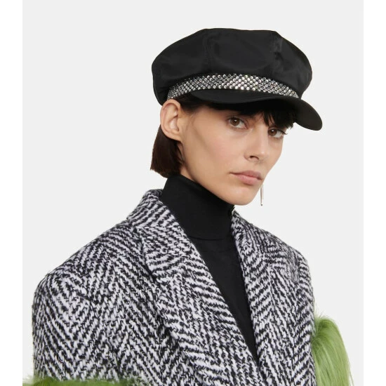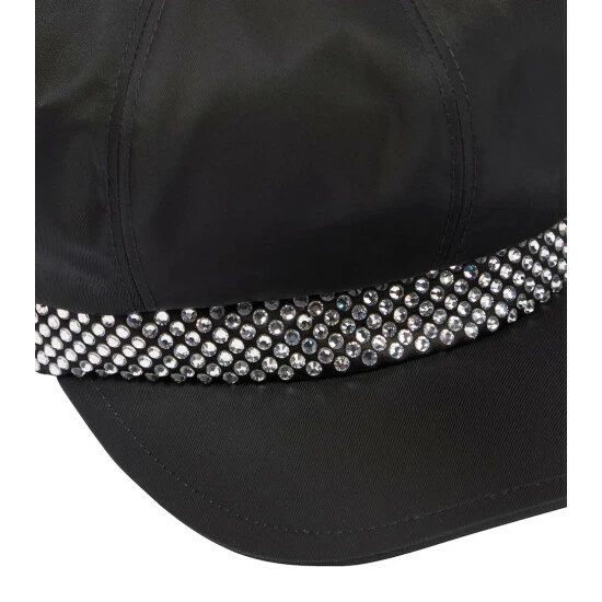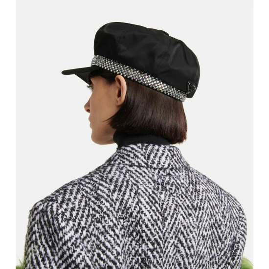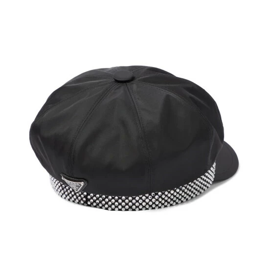 Prada lends a glamorous touch to this baker boy cap with hotfixed crystal adornment. It’s made in Italy from signature recycled nylon, and accented with the house’s triangular logo plaque at the back.