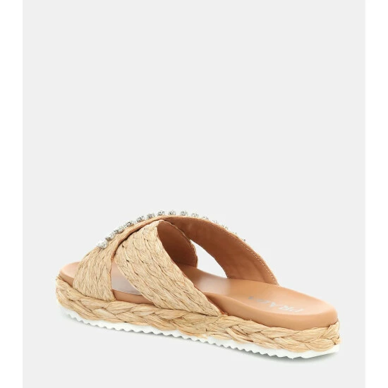One of our favorite trends, artisanal elements elevate Prada’s sandals above the ordinary. Crafted with braided straw uppers, they’re embellished with rows of baguette-cut crystals, then set on stacked soles with woven trim – all of which highlight their complex construction.