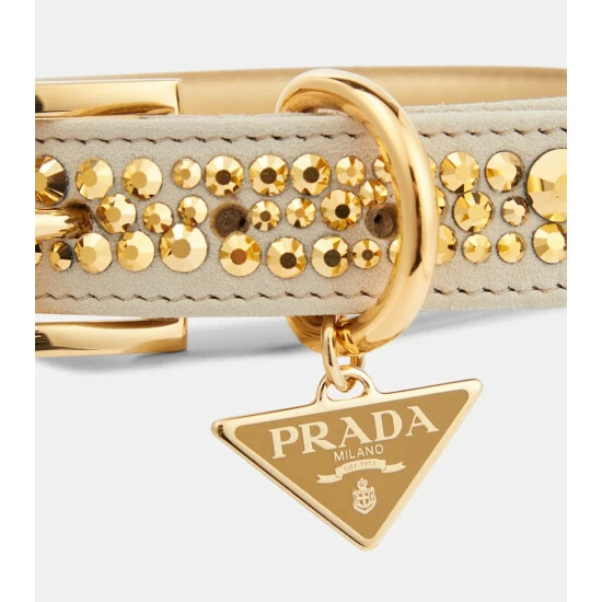 Treat your furry friend to a stylish Prada accessory to match your own luxury collection. Made from smooth suede, this dog collar is decorated with crystal studs and the brand-iconic emblem at the buckle strap.