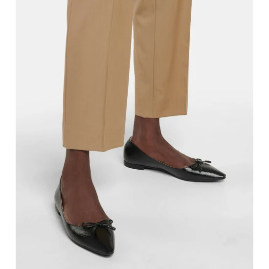 Timeless in classic black, this pair of pointed-toe ballet flats promises to bring a polished finish to your look. The leather style has been crafted in Italy with an embossed effect, and it features a tonal bow and metal logo detail atop the toe. Let yours punctuate the label’s eccentric printed pieces.