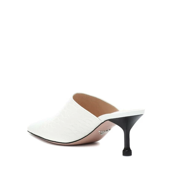 Simple to style and easy to slip into, these embossed mules from Prada are your one-way ticket to chic style. Crafted in Italy from white leather, this point-toe design is set on a petite black heel for contrast. Allow yours to add a monochromatic touch to the label’s tie-dye pieces.