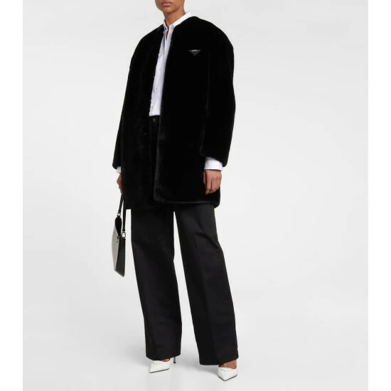 Add a touch of opulence to your outerwear edit with this faux fur coat from Prada. Designed for a regular fit, the style has a front hook closure, side-slit pockets, and is finished with a triangular logo at the chest.