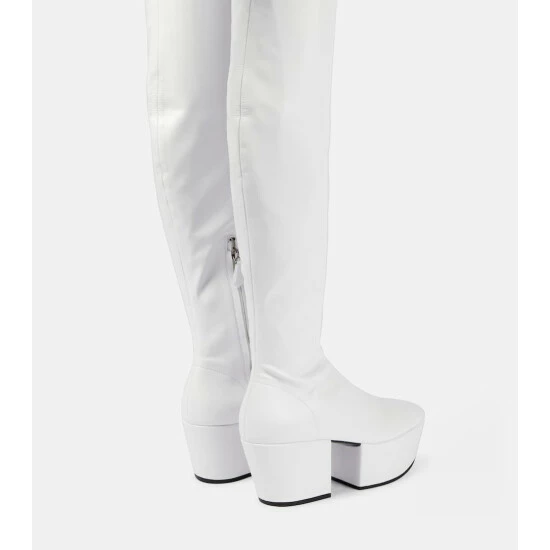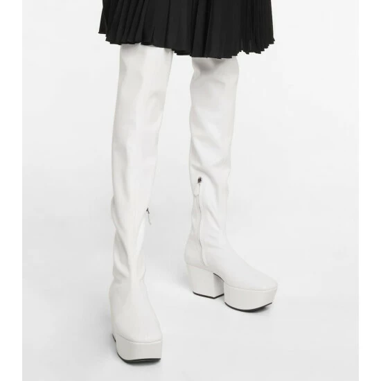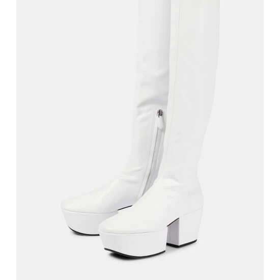 For truly impactful footwear, look no further than these over-the-knee boots from Prada, hailing directly from the runway. Made from white faux leather, they are built on platform heels and finished with a square toe for optimum coolness.