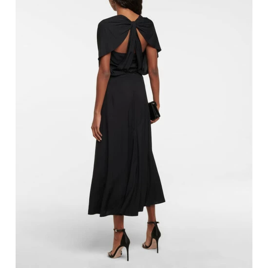This black cocktail dress from Prada is perfect for the woman with the busy social calendar. It’s made to drape beautifully: the soft, fluid twill fabrication has a supremely soft handle and liquid effect. It has a camisole bodice with a cape-like detail that encloses the shoulders and wraps at the back – a testament to the label’s attention to detail. For your next festive occasion, accessorize minimally with a simple clutch and pumps.
