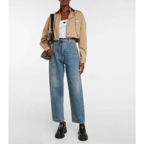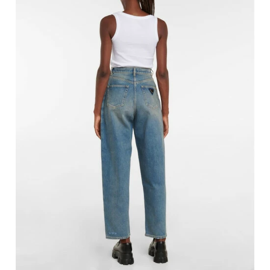 Opt for these boyfriend jeans from Prada for a comfy and effortlessly chic addition to your everyday rotation. The style has a high-rise waist, wide-leg silhouette, and a worn-in effect for retro appeal.