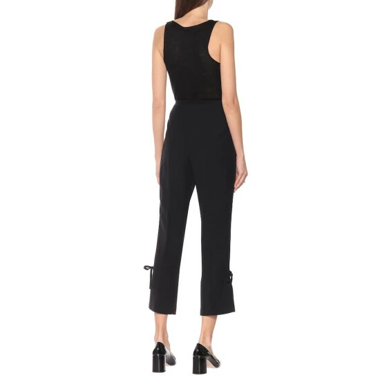 These black pants from Prada are a timeless wardrobe staple with directional appeal. Embellished with satin bows just above the cuffs, which is a signature of the house, this Italian-crafted pair is cut from crêpe to a straight-leg silhouette that sits high on the waist.