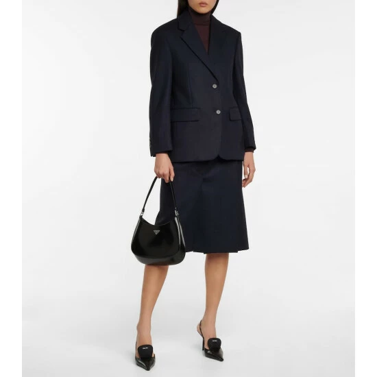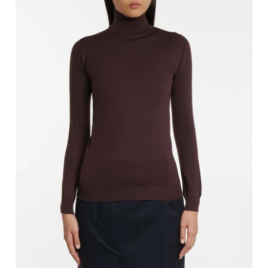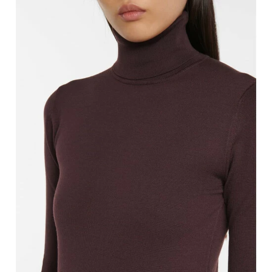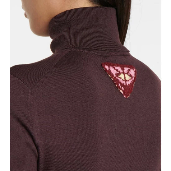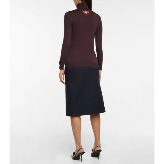 Prada’s new collection is brimming with foundational knits like this brown and burgundy turtleneck sweater. Made from stretch-wool with a geometric intarsia pattern, the runway piece is an easy layering base that will add color, texture and interest to your looks.