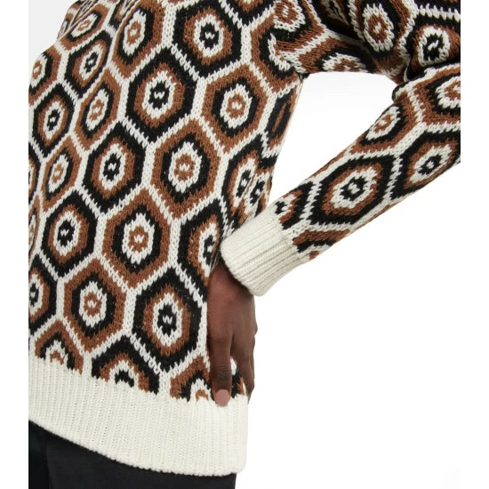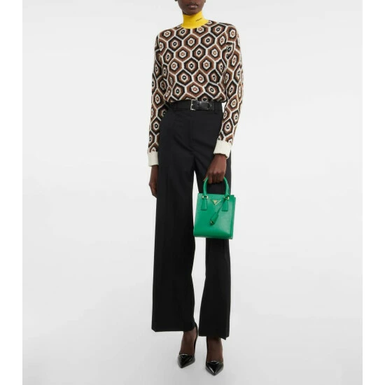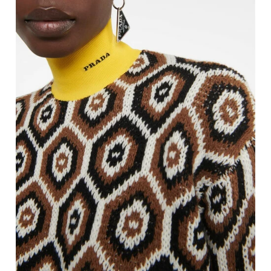 Retro meets modern in this sophisticated intarsia sweater from Prada. It’s made from a fine wool and cashmere blend to a relaxed fit and features a bright, contrasting cotton turtleneck detailed with jacquard logo.