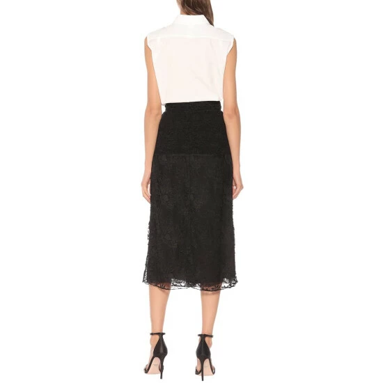 Introduce intrigue into all-black ensembles by donning this lace midi skirt from Prada. The A-line silhouette has been crafted in Italy from silk with a semi-sheer floral overlay topping an opaque lining. Carry one of the label’s Cahier shoulder bags in hand to achieve inimitable elegance.