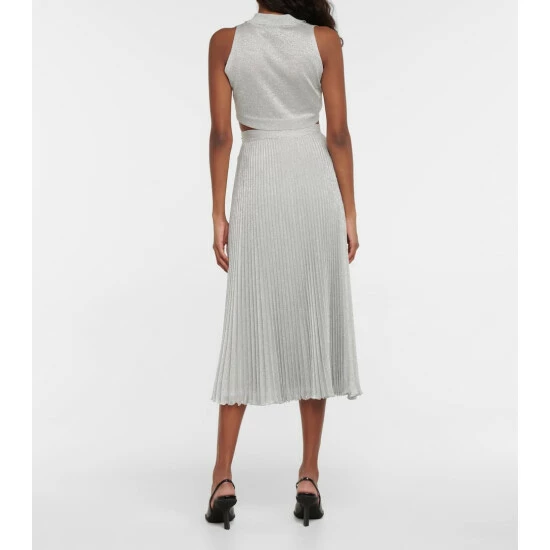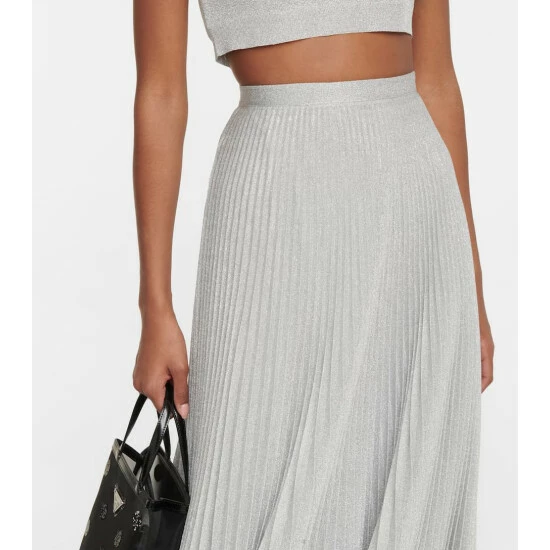 With a glittering surface and flared hemline, this skirt from Prada lends a romantic flair to your festive looks. The plissé midi is defined by a cinched waist and fully lined with silk for comfort and ease.