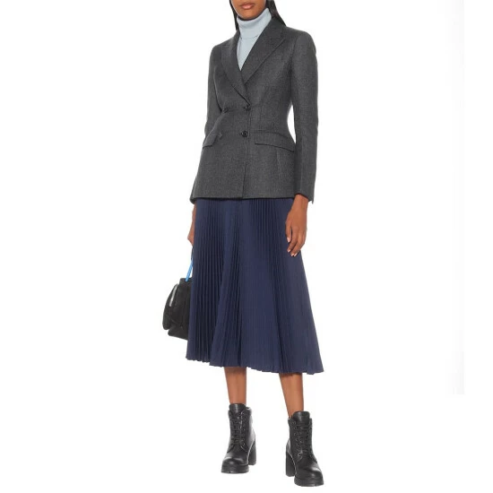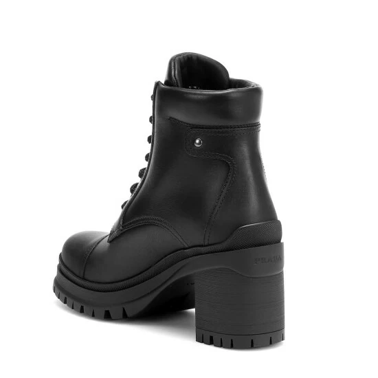Prada elevates a combat boot – literally – this season by setting this black leather pair atop a thick block heel. The edgy design is made in Italy with a lace-up front and silver-toned hardware. Let yours be the base to denim looks and dresses alike.