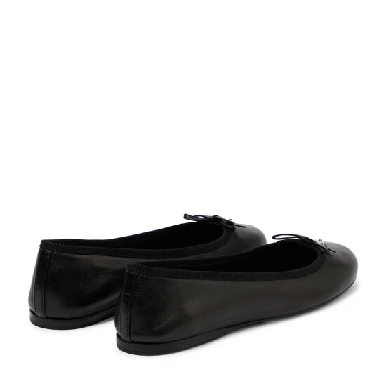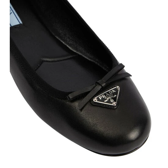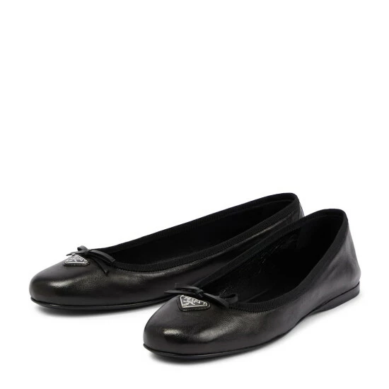 Add an elegant touch to your footwear edit with these ballet flats from Prada. Made in Italy from leather, this classic silhouette has rounded toes, dainty bows, and signature Trangolo plaques.