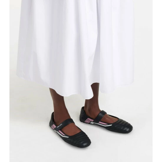 For a new take on ballet flats, consider this Prada pair with sporty stylings. This black style is made from quilted leather, and VELCRO fastenings and squared toes further highlight its modern looks. Style yours with the house’s nylon ready-to-wear.